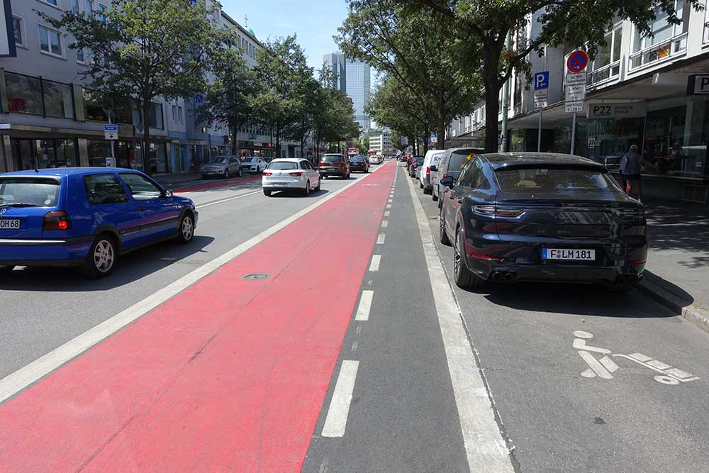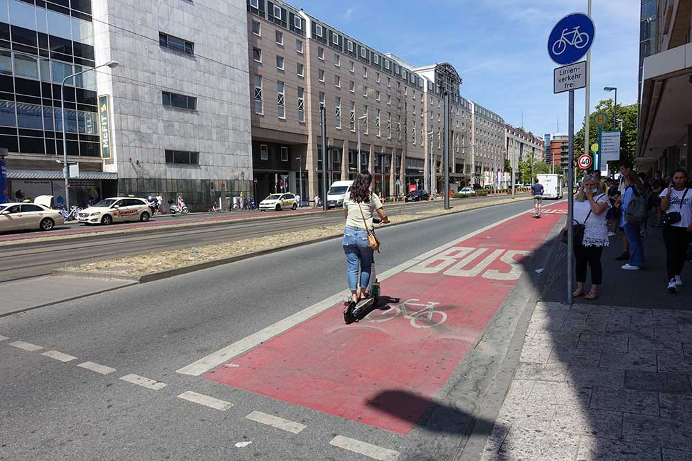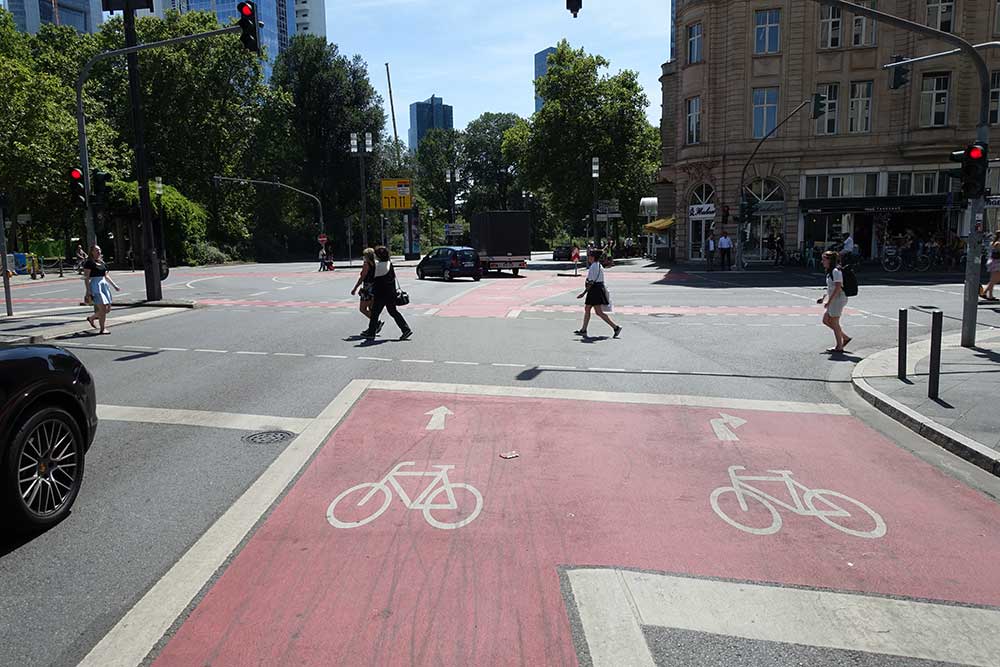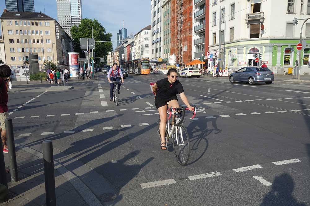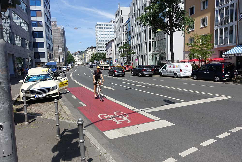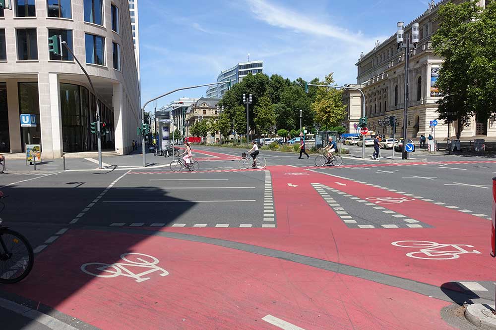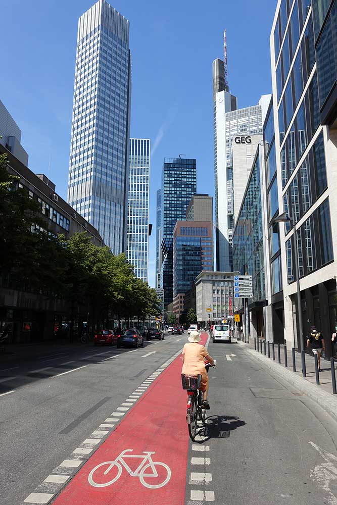 フランクフルトは自転車政策の先進都市でもあります。私はこれまでに4度訪れていますが、そのたびに自転車レーンが拡充され、自転車利用者が増えていることを実感します。
