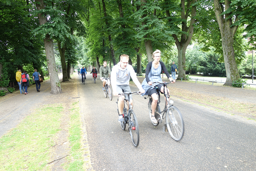 「プロムナード」は並木に囲まれており、中央には自転車専用道が整備されています。多くの自転車が時速20kmほどのスピードで走っており、その両側には歩道も設けられています。
