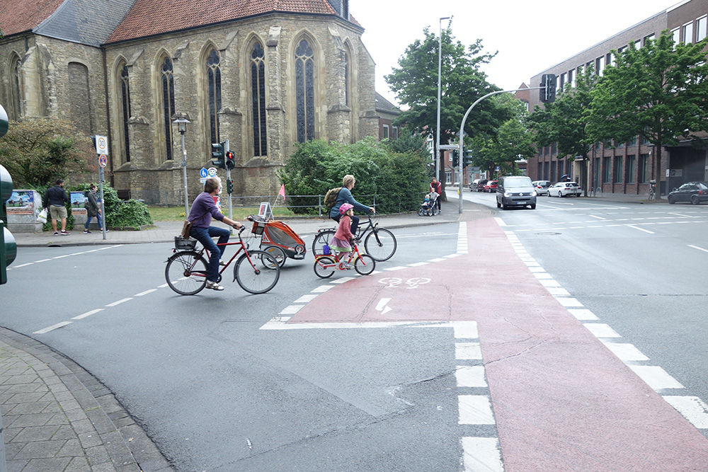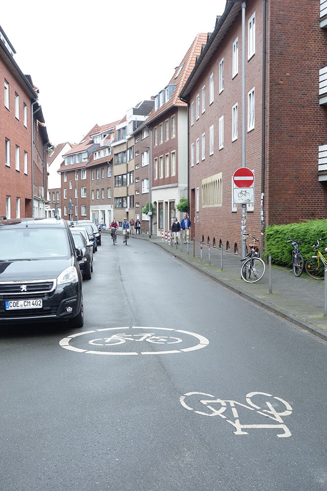 ミュンスターでは「プロムナード」以外にも、市街地の至るところに自転車道が整備されています。