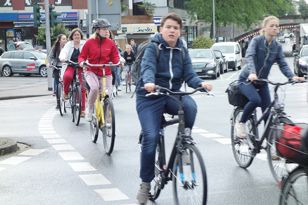 通勤時間帯には非常に多くの自転車が走っており、信号待ちでは自転車の渋滞が起こることもあります。