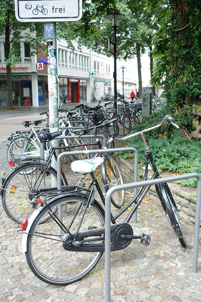 街の各所には、逆U字型のパイプを地面に埋め込んだ駐輪スペースが整備されています。