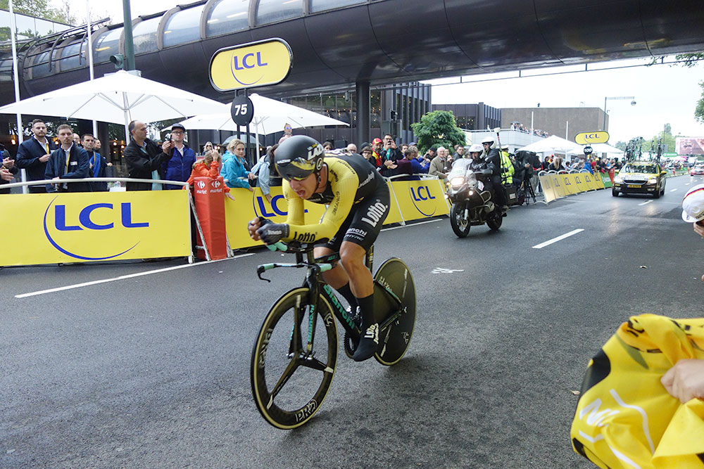 初日は、デュッセルドルフ市中心部に設けられた全長13kmのコースで、個人タイムトライアルが行われました。