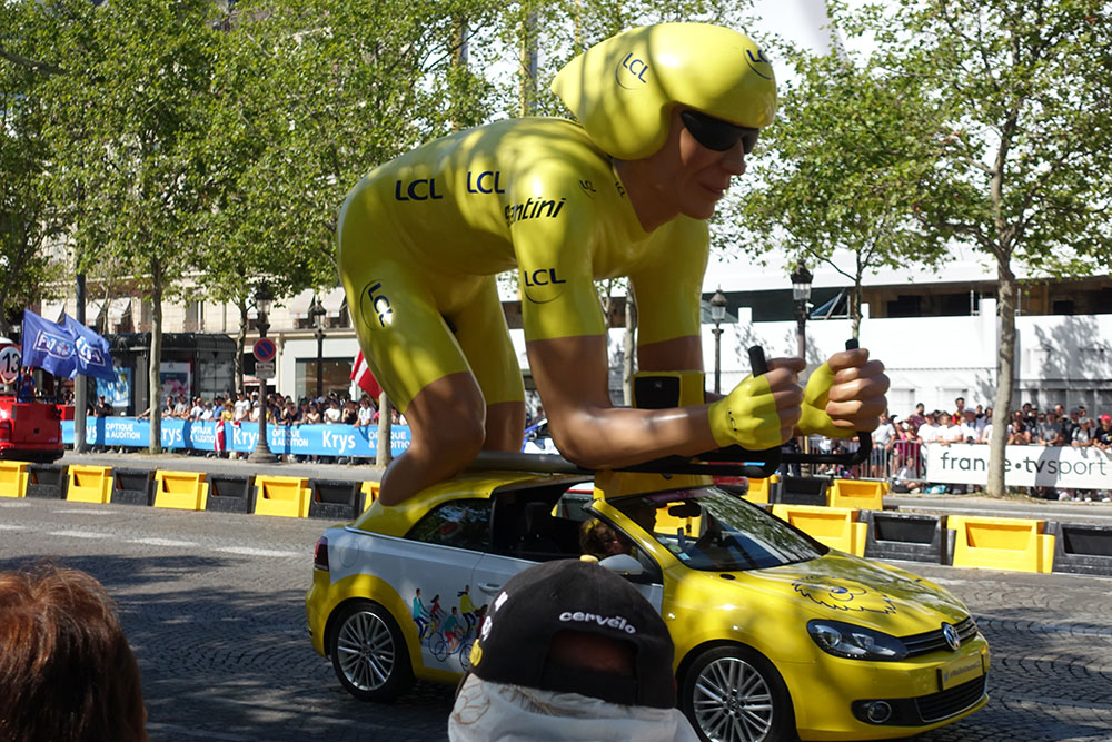 とはいえ、あまりにも人が多く、選手それぞれを見分けるのはなかなか困難でした。ゴール付近は特に混雑していて近寄ることができず、いつのまにかフィニッシュが終わり、観客が一斉に帰り始めていて、改めてツール最終日の人気ぶりを実感しました。