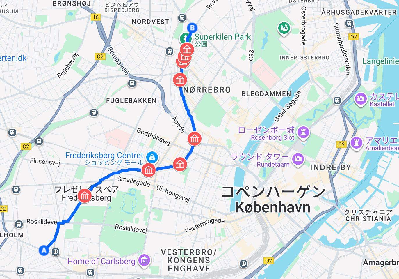 その中で、市内北部のタゲンスヴェイから南部のヴァルビー・ランガデを結ぶルートを走ってきました。