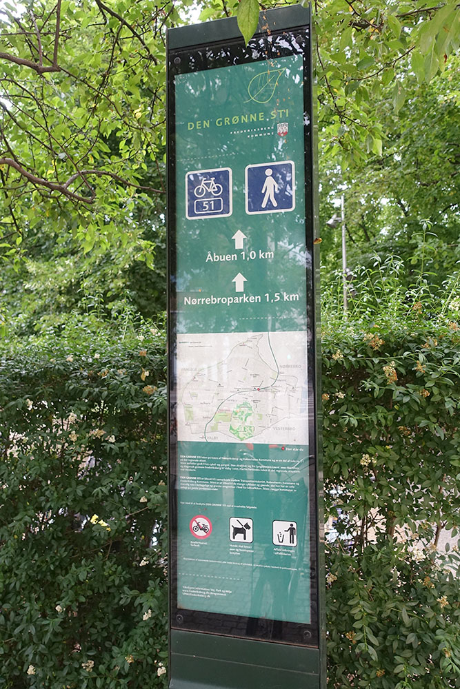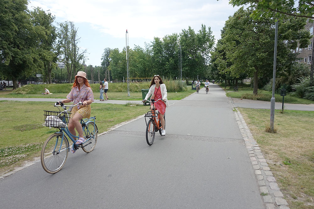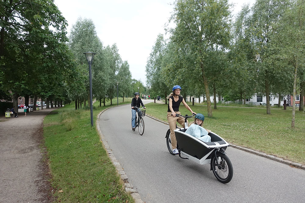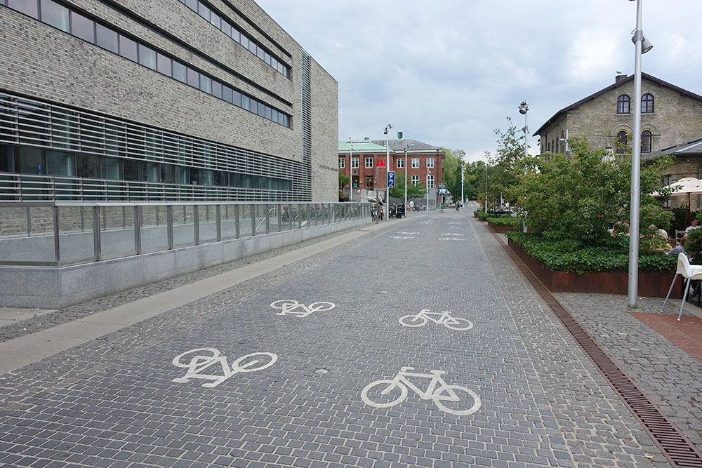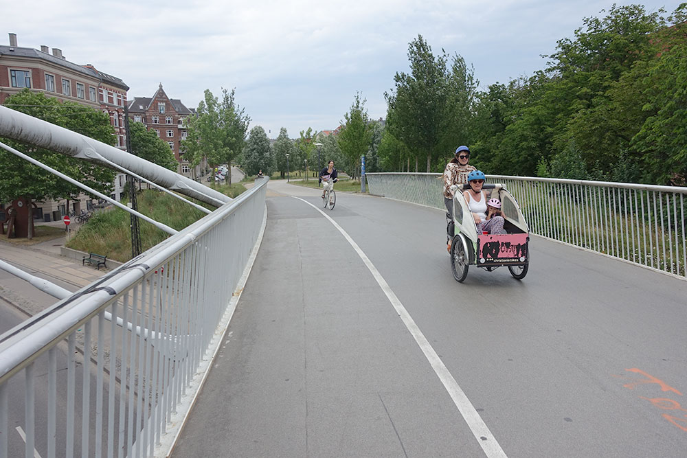 コペンハーゲン市内には、幹線道路沿いの自転車道とは別に、「グリーン・サイクルルート」と呼ばれる自転車専用・優先道路が整備されています。現在、約58kmが整備されており、将来的には数百km規模のサイクルネットワークを目指しています。