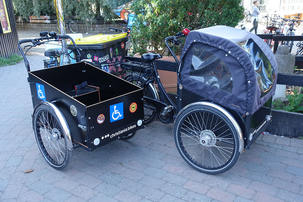 最も有名なのは、「クリスチャニアバイク」でしょう。市内にある「クリスチャニア」というヒッピーたちのコミュニティで、車がなくても生活できるようにと開発されたのが始まりです。