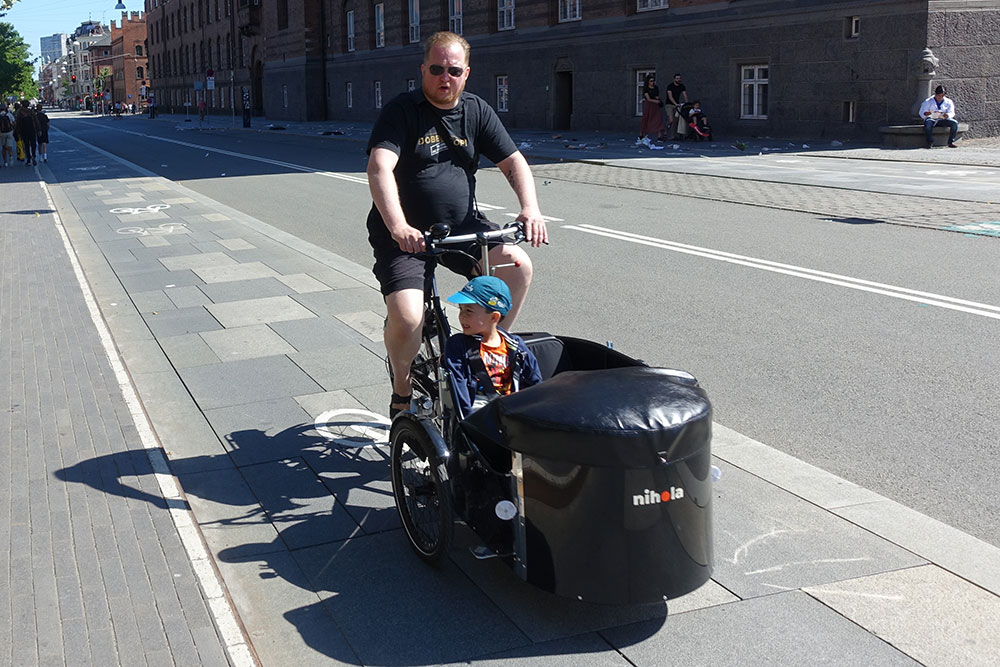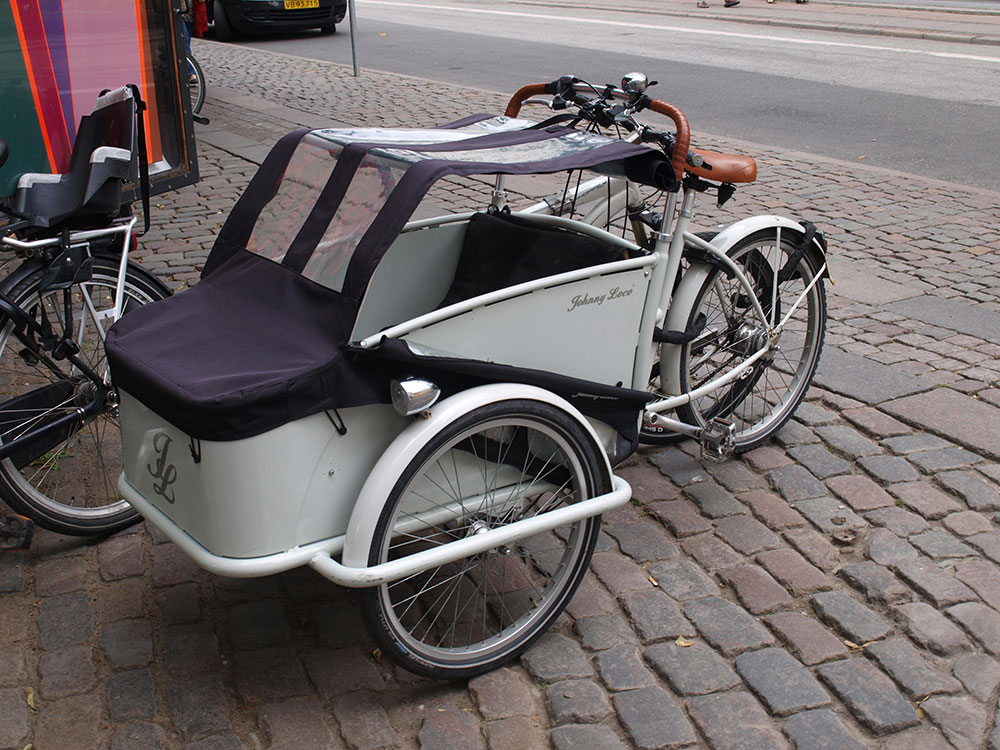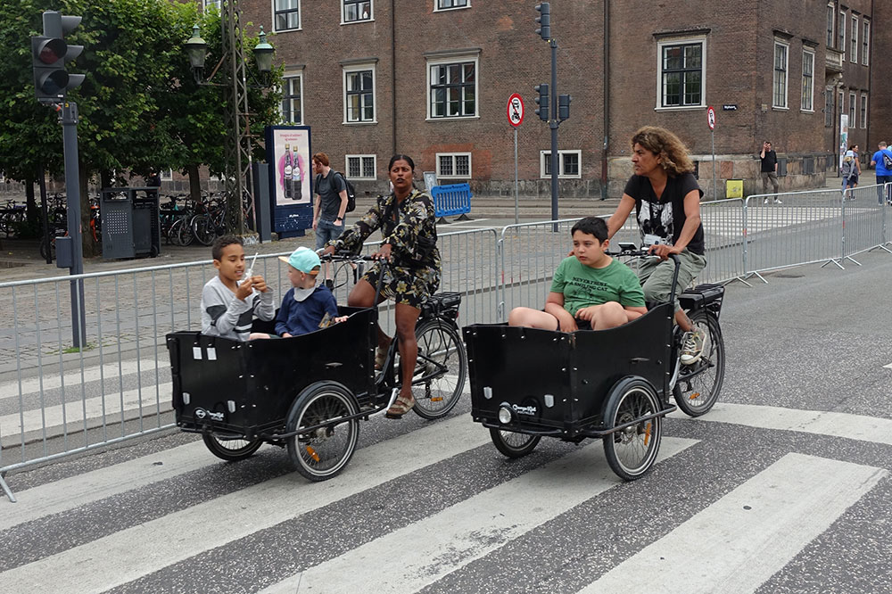 コペンハーゲンでは、カーゴバイクを非常によく見かけます。「カーゴ」とは荷物のことですが、子どもを乗せるためにも広く使われており、コペンハーゲンでは子どもが2人以上いる家庭の26%がカーゴバイクを所有しているといわれています。