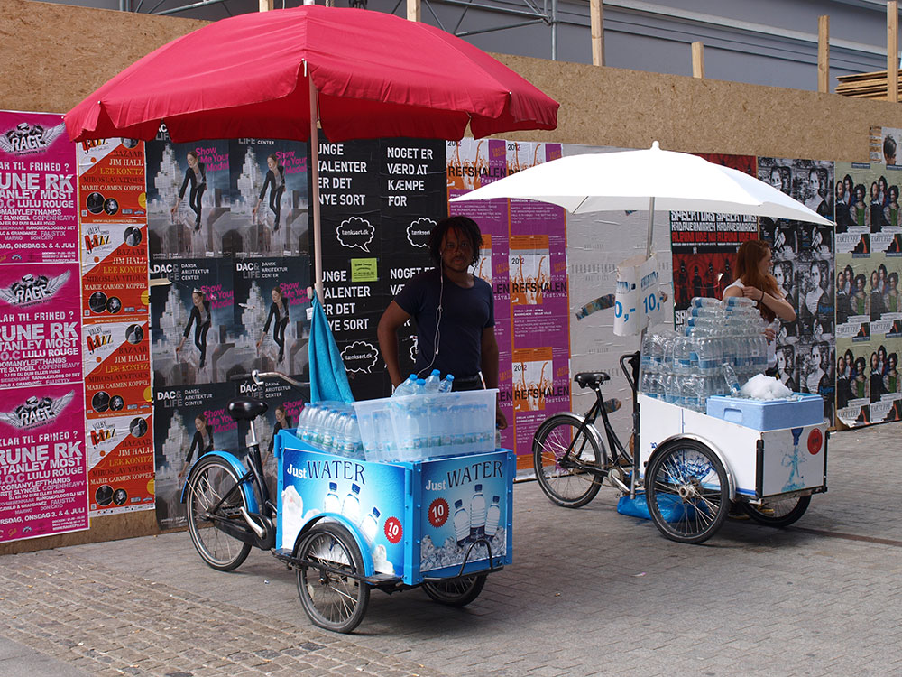 ミネラルウォーターもカーゴバイクで販売されていました。