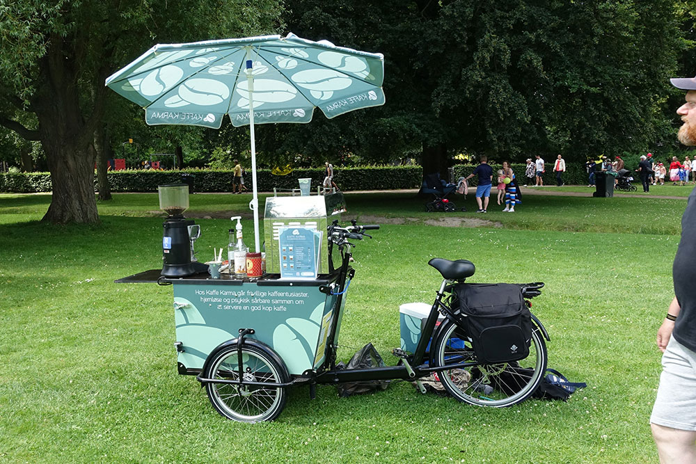 こちらはコペンハーゲン近郊のロスキレで、2022年のツール・ド・フランス長距離ステージのスタート時に、スタート地点の公園で出店していたカフェです。ここでもカーゴバイクが使われていました。