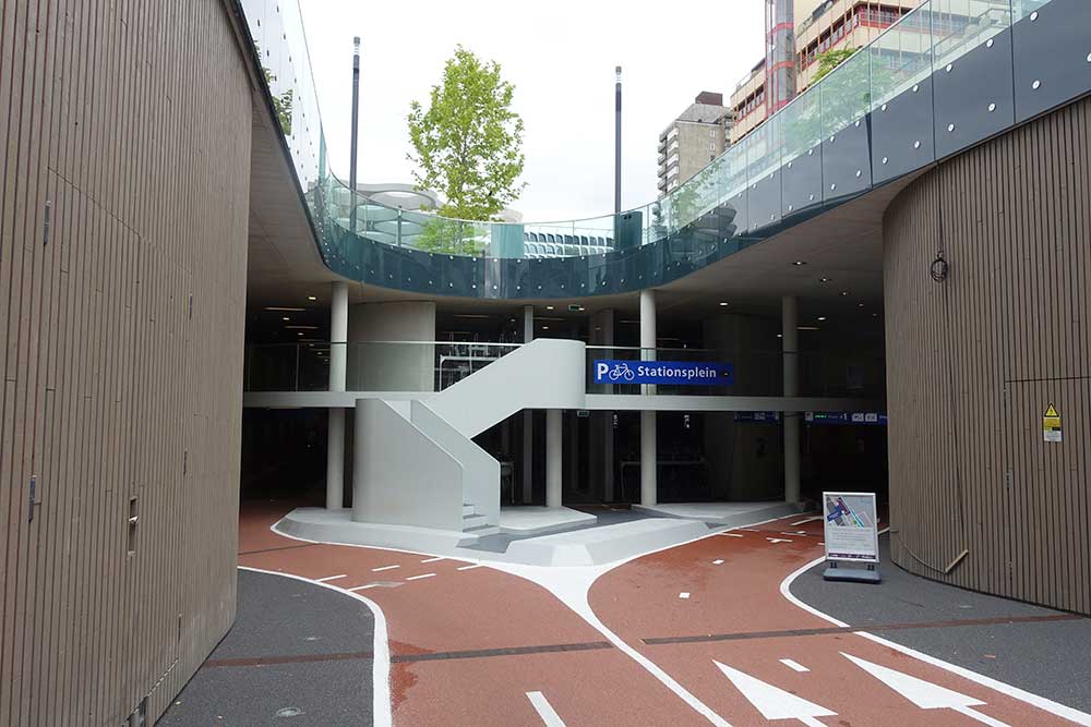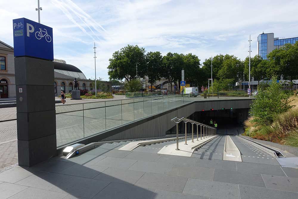 こちらは、オランダ南部・アイントホーフェンの駅前駐輪場の出入り口です。
