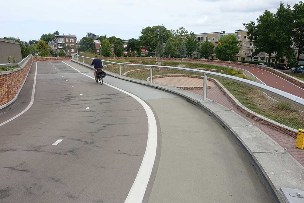 次は、運河に架かる自転車・歩行者専用橋のダフネ・スキッパーズ橋です。橋の上は歩行者と自転車の通行空間が分離されています。