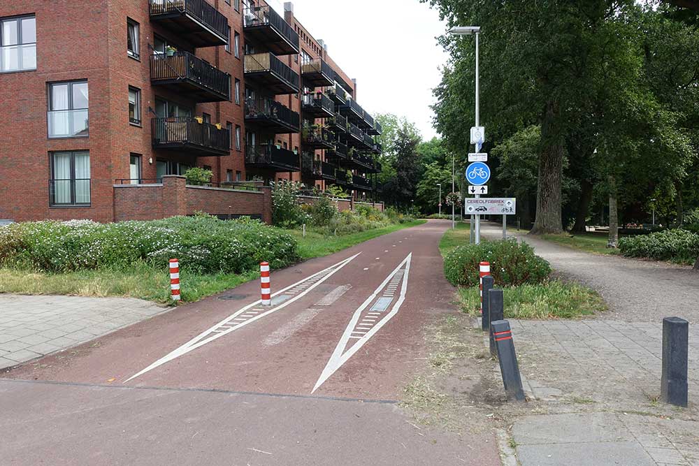 住宅街に入る場所には、自転車の速度を落とさせるためのシケイン(狭窄)が設けられていました。