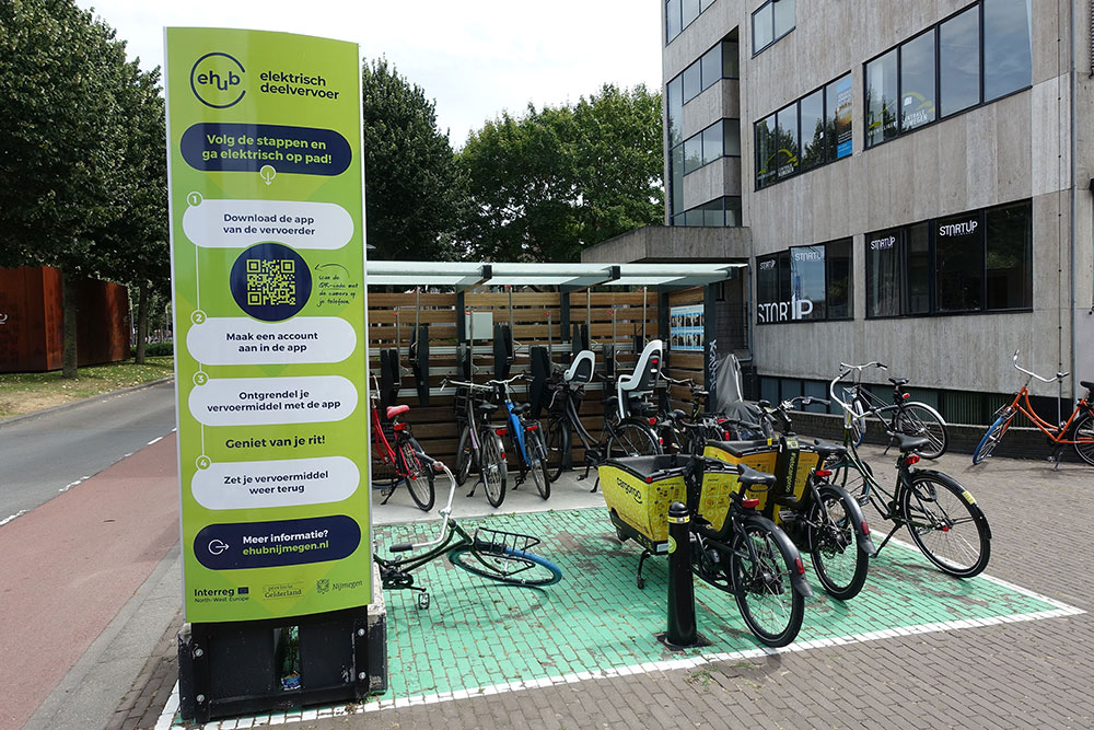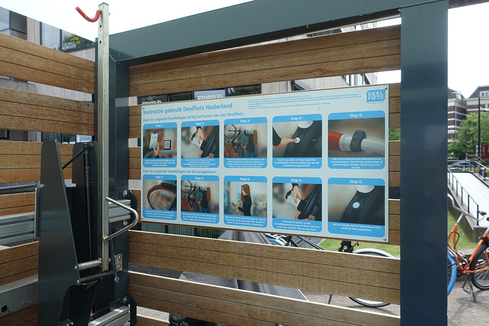 説明板によると、本来はシェアサイクル用のラックですが、実際には駐輪場のように使われてしまっているようです。
