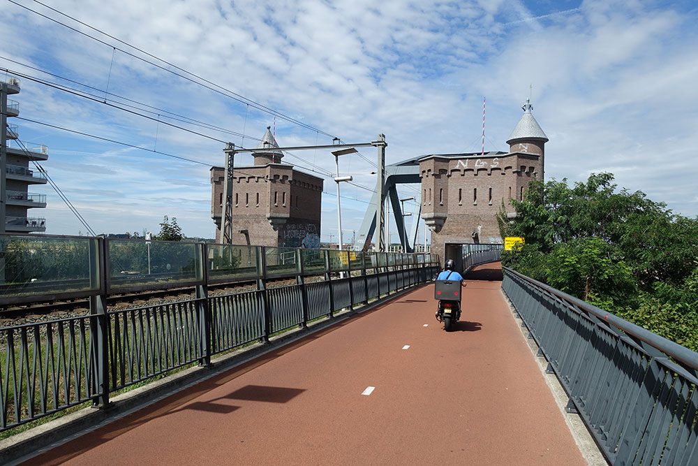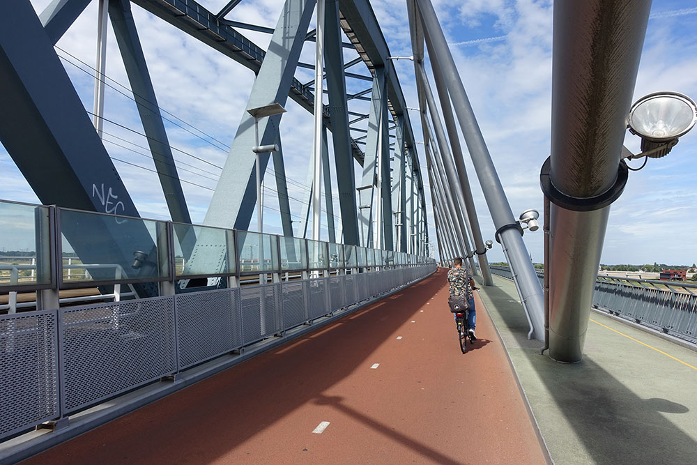 鉄橋でワール川を渡ります。自転車道の隣には歩道も設けられています。