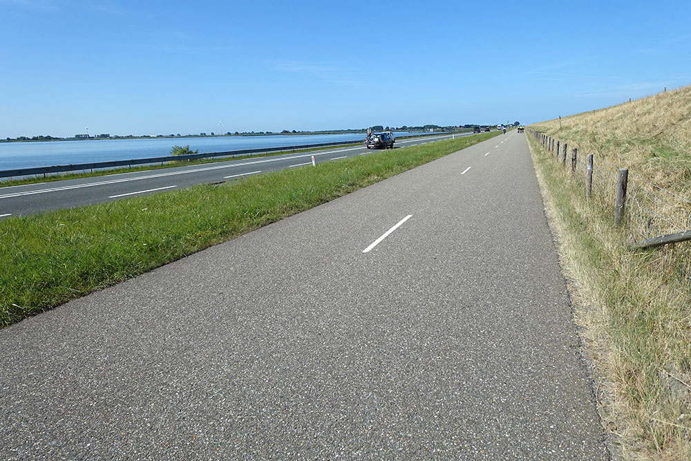 この堤防の上には高速道路と、やはりオランダらしく自転車道が通っています。そこを走るべく、現地まで行ってきました。